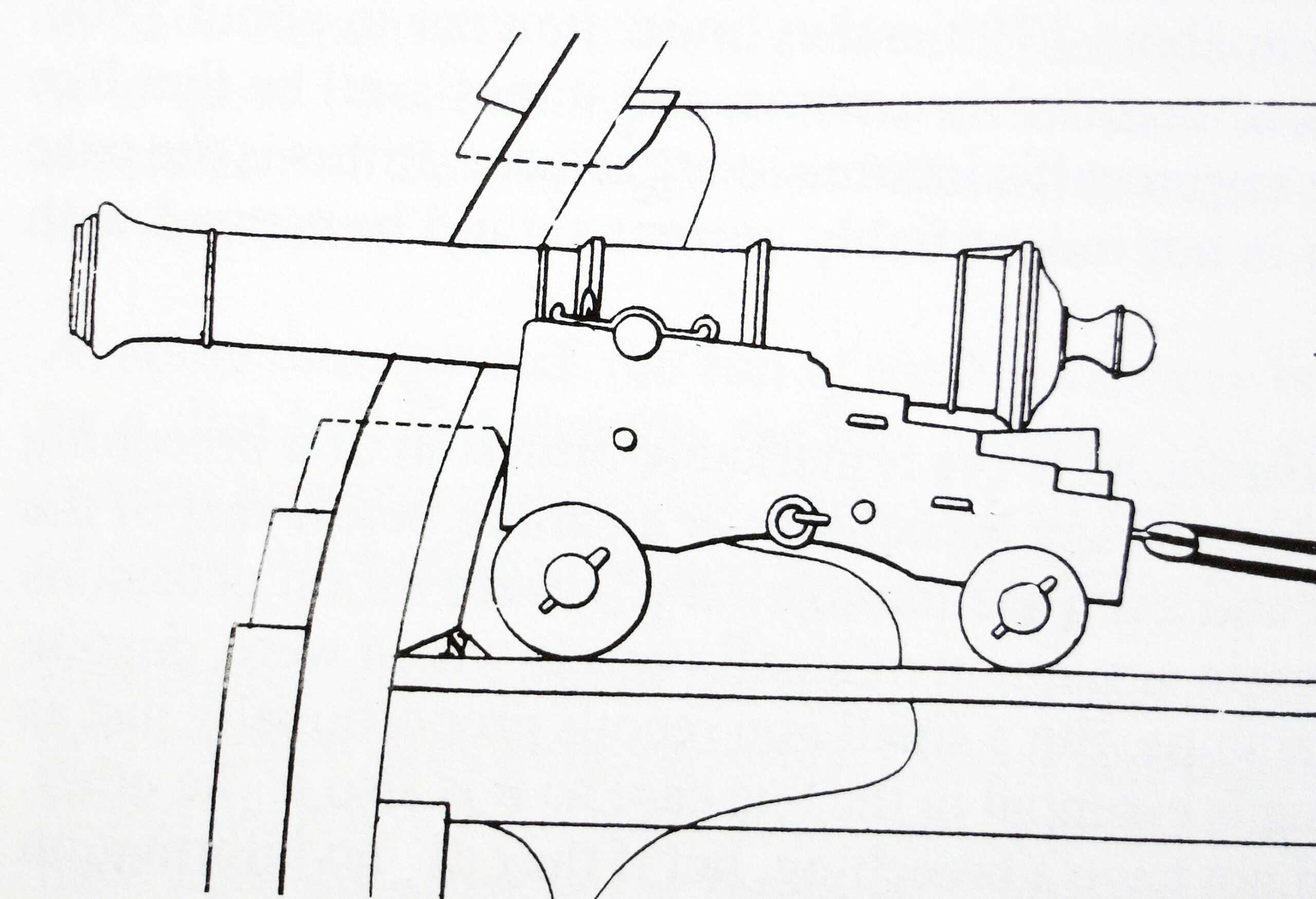 Although classed as a 74-gun ship, Colossus actually carried 82 guns on four different levels. This was because the convention at the time was to only count the long guns and exclude the eight Carronades on the poop and fore decks. All the guns were smooth-bored cast iron, and designed to fire a variety of projectiles (grape, case, bar, chain and round shot). The guns were classified according to the weight of round shot they fired. The lower gun deck had 28 thirty-two pound guns; the upper deck had 28 eighteen-pound guns while the quarterdeck and forecastle held the 18 nine-pound guns. The guns visible from this dive station are eighteen-pound guns of the Armstrong type, while the lower deck guns were the newer Blomefield 32-pound design.