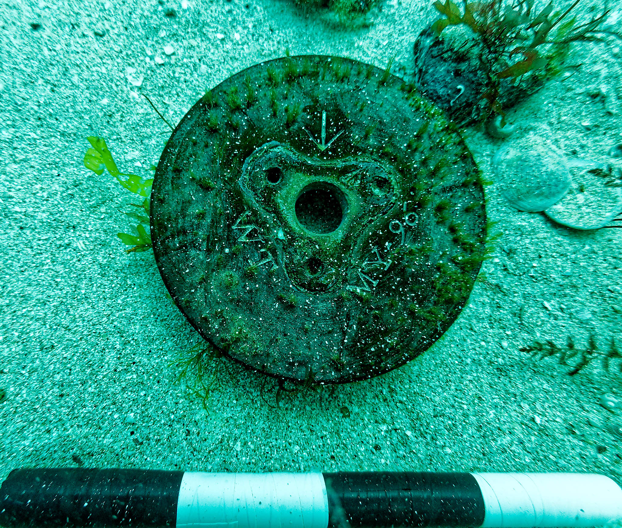 You are now back at the seabed sign. If you wish to explore the outlying objects, follow the bottom line to the south-east to complete the Green Route. This will take 15-30 minutes to complete. The dive stations are all much further apart on this route, so to help you find them there is a bottom line to guide you. PLEASE do not pull on the bottom line – if you do, you could pull out the staples anchoring the line to the seabed.