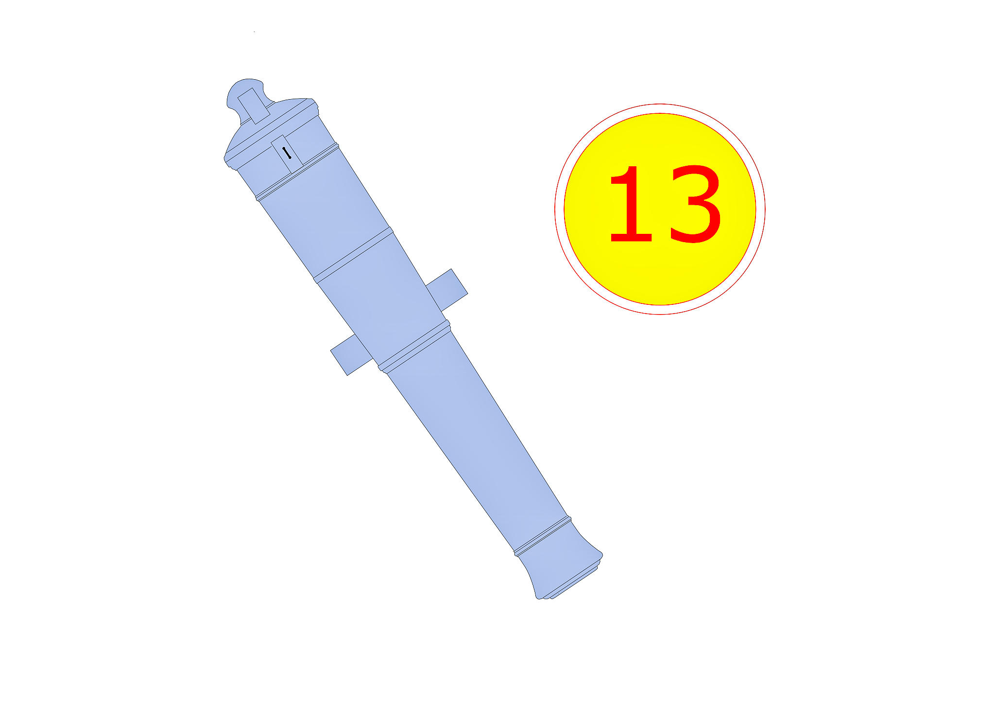 Three metres to the west of station 4 you will find another of the upstanding eighteen-pound guns. Notice a number of iron rods attached to the barrel of the gun. These are the iron fastenings which held the wooden gun carriage together. The timber of the carriage has now decayed, leaving only the remains of the iron fastenings.